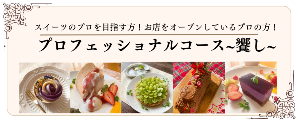 プロフェッショナルコースにおいては、レシピを使用したお菓子の販売、お菓子教室での教えるレシピとして活用いただけます。
