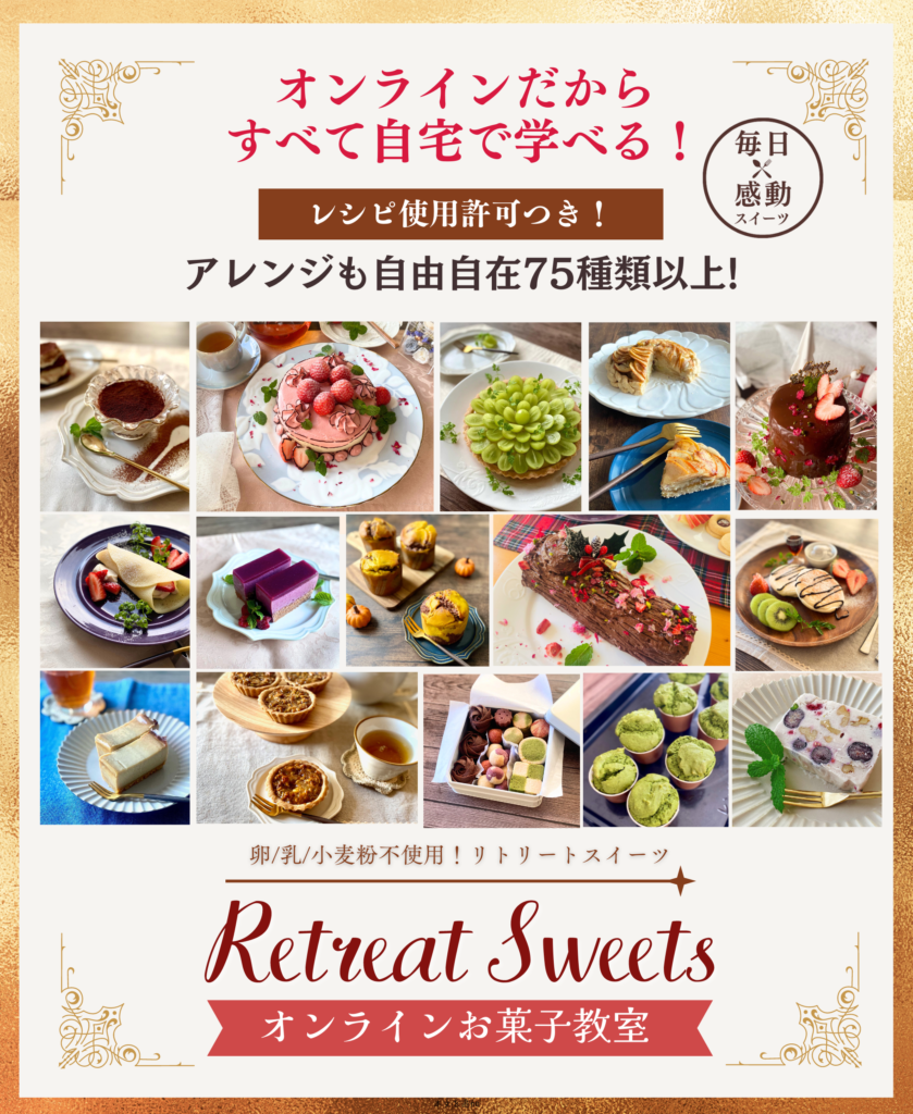 また、Retreat Sweetsのカリキュラム形態と同様のオンライン教室での利用は対象外とさせていただきます。