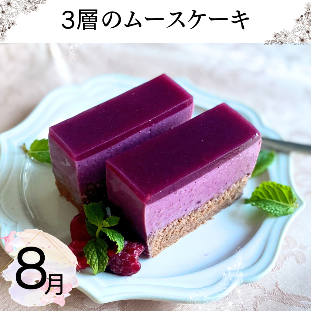 「基本のスイーツ編」の自習用動画レッスンで学んだことを元に、毎月追加される3つの旬のスイーツを楽しみます。