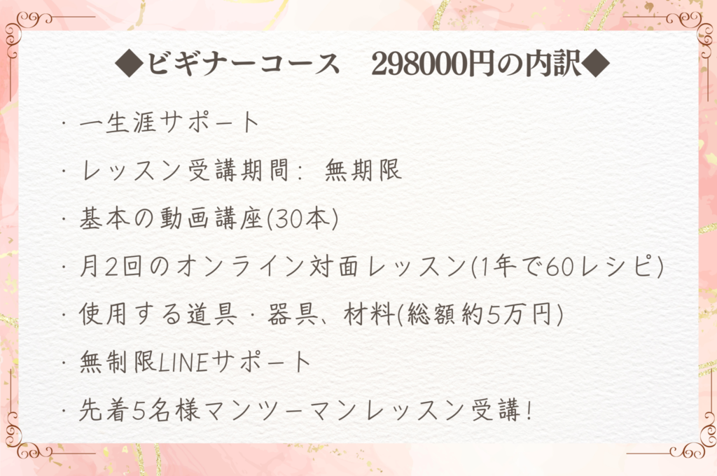オンラインレッスンであるということで受講前はどうなのかな〜と思いましたが、ほんわか楽しいレッスン、珠玉のレシピの数々、手厚いサポート体制…他にないオンラインお菓子教室です!実際レッスンを受けてみると、オンラインで良かったと実感しています!